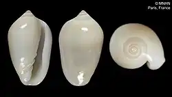 Shell of Volvarina riparia (holotype at MNHN, Paris)