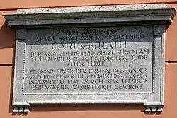 Carl vom Rath, plaque from Koberwitz, Lower Silesia