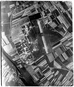 The damaged airfield was seized by American Army units on 4 April 1945. The damaged airfield was repaired by IX Engineering Command, Ninth Air Force and re-designated as "Advanced Landing Ground Y-96". American Army Air Force units used the airfield as a casualty evacuation and combat resupply airfield by the IX Air Service Command, as well as a combat airfield by the 48th Fighter Group with Republic P-47 Thunderbolts operating for two weeks until the German capitulation on 8 May.[1][4]