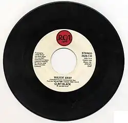 "Walkin' Away" is a song by American country music artist Clint Black. It was written Black, Hayden Nicholas, Black's electric guitarist and Dick Gay, his drummer. It was released in February 1990 as the fourth single from his album, Killin' Time. The song was his fourth consecutive number-one hit on both the Billboard Hot Country Singles & Tracks chart and the Canadian RPM Country Tracks chart.[1]