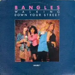"Walking Down Your Street" is a song by the Bangles. It is the fourth single from their 1986 album Different Light. After its single release in 1987, the song charted at #9 on the Cash Box Top 100,[4] #11 on the Billboard Hot 100, #16 on the UK Singles Chart,[5] #26 on the Canadian RPM Top Singles and #56 on the Australian Kent Music Report chart.[6] "Walking Down Your Street" was the final single from Different Light in the US; the album's next single, "Following", was only released in the UK.