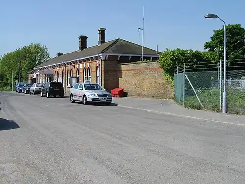Construction of the station was delayed owing to problems buying the relevant land, and it cost £14,000 to build.[5] The station was opened on 15 June 1881 by the Dover and Deal Joint Railway when it opened the line from an end-on connection at Deal to Buckley Junction near Dover.[6][7] The line was the only one jointly owned by the rival South Eastern Railway and London, Chatham and Dover Railway and remained independent until the Grouping.[8] The line has been described as one of the more spectacular in southern England.[9] Gas lighting was installed at the station by the end of the year.[10] A station closer to the sea was proposed in 1898, but rejected.[11]