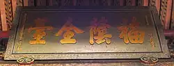 Inside the temple, there are twelve historical wooden plaques (bian'e) that are protected by the city.[1] Most notably, there is one that dates from 1732 carved with the words Fúyīn Chuántái (福蔭全臺, lit. "blessings across all of Taiwan"). The plaque was gifted to the temple by Peng Chao-gui (彭朝桂), a Qing military official, and is the oldest surviving plaque in Taichung.[3]