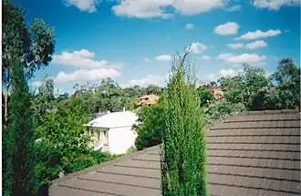 Warranwood is adjacent to Warrandyte South and Ringwood North; its name is a conjunction of the two words. In 1946,[2] the South Warrandyte Progress Association invited suggestions for a name, as at the time there was no definite name for the locality. At one time, it had been referred to as "Croydon Heights". The choice of "Warranwood" from part-time resident Mrs. J. Harrison of Brysons Road was accepted by postal authorities and the Shire of Lillydale.[3]