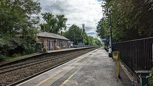 ![]() Warwick station in 2022, looking west towards Birmingham. | |||||