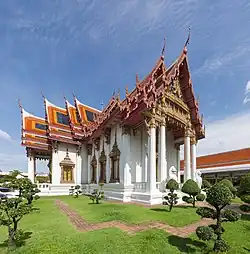 Wat Amarinthraram Worawihan (Thai: วัดอมรินทรารามวรวิหาร), or known in short as Wat Amarinthraram or just Wat Amarin is a Thai Buddhist temple in Thailand. It is located on the southward of canal Khlong Bangkok Noi, next to the Siriraj Piyamaharajkarun Hospital and Bangkok Noi railway station near the foot of Arun Ammarin bridge, considered as the temple that is nearest to Siriraj Hospital.