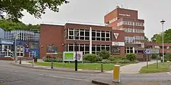 New offices were built on the site of the former parish council's offices at the corner of Bridge Road and The Campus. The new building was formally opened in January 1937.[22][23] This building served as the headquarters of Welwyn Garden City Urban District Council until its abolition in 1974. Between 20 May 1948 and 31 March 1966 the development of the town was also administered by the Welwyn Garden City Development Corporation, set up under the New Towns Act 1946 (9 & 10 Geo. 6. c. 68).[24]