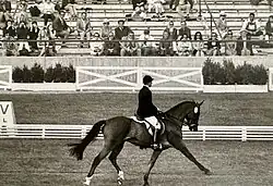 Among the male dominated 73 competitors, Dell, 20 at the time, was the youngest of the only three women to compete among the 19 countries entered. She was one of the only 48 riders to complete the competition (as were the other two women). Nearly a third of the competitors were unable to finish what was known as one of the most difficult cross-country courses in Olympic history - with four fences alone producing 38 refusals, 18 falls and 7 eliminations. The cross-country phase also included the old eventing format with steeplechase and two roads and tracks components – which was over thirty miles long.[6][2]