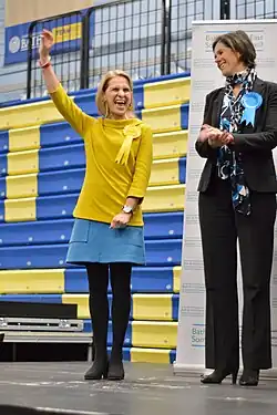 In 2017, Hobhouse was selected as the Liberal Democrat prospective parliamentary candidate for the constituency of Bath.[22] Hobhouse stood on a pro-European platform which emphasised housing, education, congestion and pollution concerns, as well as opposition to the incumbent Conservative MP's plans to link the A46 and A36 roads together. Her party emphasised the need for Labour supporters to vote tactically for Hobhouse to defeat the Conservatives.[5][23] At the snap 2017 general election, Hobhouse was elected to Parliament as the MP for Bath with 47.3% of the vote and a majority of 5,694 votes.[24][25]
