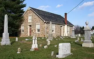The Wesley Chapel Methodist Episcopal Church in Eldersburg, Maryland is a characteristic small church of the period (built ~1822), with uncoursed stone rubble construction and a simple plan. The interior is a single barrel-vaulted room. It was erected to serve one of the earliest Methodist congregations in Carroll County, and hence in the United States, as Carroll County was a birthplace of Methodism in America.[2]