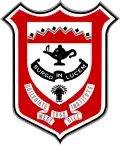 The crest for West Hill consists of a red shield with a white shield bordered in black and silver containing a red sun on the top, between a magic lantern (commonly found on most school logos in the TDSB) and a sheaf is the school motto, "Surgo in Lucem" (I rise into the light) in a black banner. On the bottom of the crest, there is the white banner inscription that reads "West Hill Collegiate Institute".