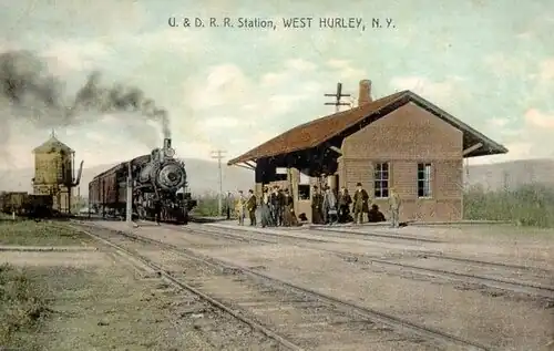 West Hurley, MP 9.8, later MP 10.2, was a railroad station on the Ulster and Delaware Railroad in West Hurley, New York that was constructed in the late nineteenth century and rebuilt during the construction of the Ashokan Reservoir. The original station was made of wood. It was later torn down and temporarily replaced with a board-and-batten shed close to Woodstock, which created much local indignation. A new brick station to replace it was constructed at the West Hurley Dike of the Ashokan Reservoir. The depot was torn down in 1967.
