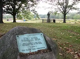 A rowing course was constructed along the river in New Haven in what is now West River Memorial Park in 1920. At the time, the Yale athletic program studied the idea of building a larger course for use in collegiate rowing competitions, but evidently decided against it.[3] During the mid-1970s, there were further plans for the expansion of the rowing course into an "Olympic rowing course", but these plans never came to fruition.[4] The development by the International Rowing Course Foundation would have included a grandstand with seating for 5,000 people and a variety of other athletic facilities.[5]