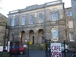 In 1829, major work on St Giles' under William Burn began and the New North Kirk was compelled to vacate the building. The church first met at the Methodist Chapel on Nicolson Square in the Southside.[12][13] At the time of its first removal from St Giles', the congregation was the largest of the four then worshipping in the building.[14] Soon after the move, John Bruce succeeded Robert Gordon as minister. The congregation grew further and included many students of divinity.[15]