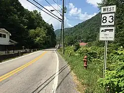 West Virginia Route 83 is an east–west state highway located within McDowell County, West Virginia. The western terminus is at the Virginia state line six miles (10 km) west of Jolo, where WV 83 continues west as Virginia State Route 83. The eastern terminus is at West Virginia Route 16 in War.