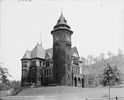 The Westinghouse Air Brake Company General Office Building (known locally as the Castle[3] or Library Hall[4]) in Wilmerding, Pennsylvania is a building from 1890. It was listed on the Pittsburgh History and Landmarks Foundation in 1975,[5] National Register of Historic Places in 1987.[1] Originally built as an office building for the Westinghouse Air Brake Company, it housed the George Westinghouse Museum from 2006 to 2016. In 2016 it was sold to the Priory Hospitality Group with the intention of being developed into a boutique hotel.[6] However, the 2020 global pandemic affected those plans[7] and it was announced in November 2021 that the building will be used for an art academy and to house classrooms for the Westinghouse Arts Academy, a nearby high school.[8]