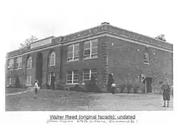 Walter Reed Elementary School was built in 1938 by contractor T. Calvin Owens on what was farmland at the time.[23] In 1950, the school was expanded and altered. A new 8 classroom wing and mechanical room were added to the rear of the building, while lower level rooms were converted to a library, teachers room, clinic and conference room. To cope with further population growth, in 1966 an octagonal classroom building was constructed.