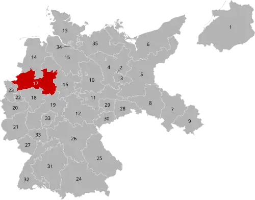 It comprised the contemporary Regierungsbezirke of Münster and Minden from the Prussian province of Westphalia, the Grafschaft Schaumburg district from the province of Hesse-Nassau, and the small states of Lippe and Schaumburg-Lippe. It was constituency 17 in the numbering scheme.[1]