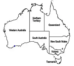 | Known range of Westringia fitzgeraldensis (in blue) | |