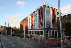 As part of the Northumberland Development Project to redevelop the White Hart Lane stadium and regenerate the area the station was also selected to be upgraded.[19] This involved the building of a new ticket hall to the south of the original station building on Love Lane to create a better connection with Tottenham High Road, and an additional entrance on Penshurst Road as well as two lifts for step-free access to ease the bottlenecking of fans on match day. There is also additional new cycle parking.[20] The rebuilding, which was undertaken by Taylor Woodrow Construction,[21] was originally scheduled to start in autumn 2017 and finish in spring 2019 but was delayed.[19][22] The new entrance to the station was opened on 26 August 2019.[23]