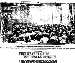 - ^ a b c "Fire Nearly Grips Wholesale District," Los Angeles Times, April 7, 1909, page II-1