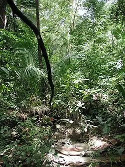 The Kaboré Tambi National Park is situated between Ouagadougou and the border with Ghana. It follows the course of the Nazinon River. It was founded in 1976 as Pô National Park or known as Parc National Kaboré Tambi (PNKT). The park has an area of 155,000 hectares (380,000 acres) in the alluvial floodplain on both banks of the ephemeral Volta Rouge River; the river results to small water holes during the summer season. A number of small marshes and lakes also dominate the scene.[10] It maintains contiguity with the Nazinga Game Ranch of 94,000 hectares (230,000 acres) area, the Sissili Hunting Concession of 32,700 hectares (81,000 acres) ha and the village hunting zones around Nazinga and Sissili villages. The park has varied topography with geological formations of granite outcrops, lateritic plateaus and several isolated high mountains. The vegetation types found here are northern Sudan savanna, shrub savanna, tree-savanna and gallery forests. The park is home to lion, elephant, buffalo and a number of antelope species. Poaching and deforestation activities are an issue in the park. The main road from Ouagadougou to Bolgatanga in northern Ghana runs across the park.[5][10]