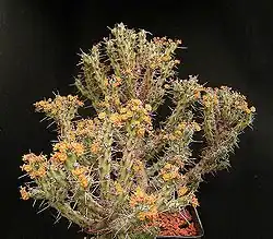 Most of the land in Djibouti is desert. However, wildlife vegetation is made up of semi-desert grassland, shrub land and succulent scrub. The coastal area consists of desert and mangrove. Dry evergreen forests are in the mountains of Mount Goda in the Day National Park near Tadjoura and Mabla mountains.[9] On Mount Goda, near Tadjoura, there are rare giant juniper trees, acacias, and wild olive trees. However, most of the vegetation is typical of the desert and semi-desert, consisting of thorn scrubs and palm trees. There are 534 species of plants recorded in the Goda and Mabla mountains including a number of endemic species. Two species of particular interest are the Nubian tree (Dracaena ombet) and the Bankouale palm (Livistona carinensis) in the national park.[5][8] Other species reported as unique to Djibouti are: Aloe djiboutiensis, Aloe ericahenriettae, Euphorbia godana, Euphorbia amicorum, Phagnalon lavranosii, Cynoglossopsis somaliensis, Caralluma mireillae, Polygala goudahensis and Matthiola puntensis.[2]