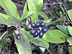 Plants in the genus Wilkeia are monoecious or dioecious trees or shrubs with sometimes toothed, papery to leathery leaves with many fine oil dots. The flowers are borne in leaf axils or on the ends of branchlets in cymes or panicles, usually with 3 to 9 flowers. Male flowers are more or less spherical, with 4 to 8 tepals usually with 4 to 8 stamens. Female flowers are flattened spherical, with minute tepals with many carpels with a short stigma. The fruit is an oval, black drupe about 15–20 mm (0.59–0.79 in) long.[2][3]