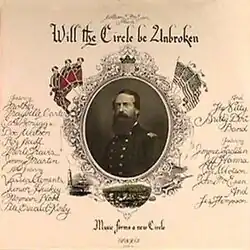 The album cover features an image of Union Admiral David Dixon Porter.[7] Originally appearing in 1972 as a three LP album and three-cassette tape offering, Will the Circle Be Unbroken was remastered and re-released in 2002 as a two compact disc set. The original album was certified platinum by the RIAA on November 6, 1997, indicating shipments of 500,000 copies.[8] It has sold 301,600 copies as of October 2019.[9]