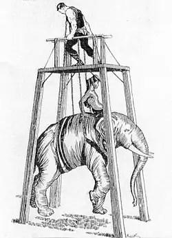 Next he joined the Bostock Circus, known at that time for having the best performers and acts, and here he polished and honed his strongman skills, part of his new act involving harness-lifting a full grown elephant weighing 32cwt and balancing on the backs of two chairs while raising a man with his right hand above his head while juggling plates with his left.[1]
