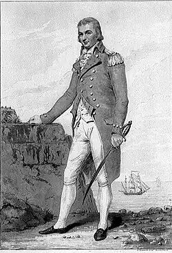 3. ^ Dates of promotions: rear-admiral of the red 9 November 1805, vice-admiral of the blue 28 April 1808, vice-admiral of the red 31 July 1810, admiral of the blue 4 June 1814, admiral of the white 19 July 1821, admiral of the red 22 July 1830.[29]