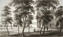 The Hall, to the west of what is now the modern district of Handbridge, was built by Thomas Cowper (d. 1695), who had acquired the estate partly through descent and partly through purchase. William Cowper made improvements to the property, which in 1811 was inherited by Charles Cholmondeley (1770–1846), third son of Thomas Cholmondeley of Vale Royal Abbey and rented to a tenant. In 1821, along with 135 acres (55 ha) of land, it was bought by Robert Grosvenor, 1st Marquess of Westminster and demolished in 1830 to allow construction of a new entrance to the Eaton Hall estate.[5]