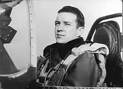 He enlisted in the Aviation Cadet Program of the U.S. Army Air Corps on March 27, 1942, and was commissioned as second lieutenant in the U.S. Army Air Forces and awarded his pilot wings on February 6, 1943, at Luke Field, Arizona.[2]
