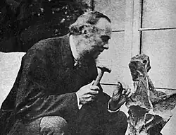 ![]() Fox, preparing a dinosaur specimen | |