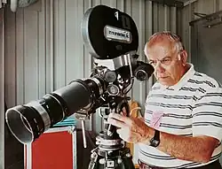 Wilson's love for sports led him to become one of the most accomplished cinematographers in that category.[1] He worked for Louis W. Kellman's Newsreel Laboratory in Philadelphia and Tel-Ra Productions, two prominent producers of sports programming during the 1950s and 1960s.[5] He was the principle cinematographer for numerous popular television sports programs including Tele-Sports Digest[3] and Gillette Cavalcade of Sports. Tele-Sports Digest was an early forerunner of ABC's Wide World of Sports and other television sports highlight programs.[1] Wilson traveled more than 2,000,000 miles (3,200,000 km), crisscrossing the nation filming major sporting events including 30 baseball World Series, 20 baseball All-Star games, 30 Kentucky Derby horse races, 20 Masters golf tournaments, 15 U.S. Open golf tournaments, 15 Indianapolis 500 auto races, 6 Stanley Cups and hundreds of college and pro football games including 13 NFL Championships and Super Bowl I and Super Bowl II.[1] He filmed numerous boxing championship matches involving Rocky Marciano, Sonny Liston and Jake LaMotta. His cinematography is immortalized in scores of college football highlight films for major universities including Notre Dame, Ohio State, Penn State, Alabama, Boston College and scores of others. He filmed more than 20 college football bowl games.[1] For filming football he typically used a 16mm Arriflex M (Arri) fitted with an 85-250mm Nikkor zoom lens. He was a regular cameraman for Winik & Winik Productions in New York City, Major League Baseball Productions, NCAA Football and the New York Racing Association. He filmed nearly every Army-Navy football game between 1955 and 1995. His cinematography for a Breeders Cup film was nominated for an Emmy.[3] As a cameraman, Wilson was a fixture at World Series games and was so well known around the baseball diamond that former President Richard Nixon once asked him to make introductions to one of his favorite Oakland Athletics players.