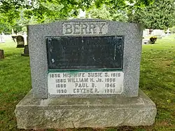 Berry died on June 19, 1928[1] and is interred at the Chester Rural Cemetery in Chester, Pennsylvania.