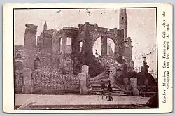 After the 1906 earthquake and fire had left both the adjacent mansions of W.H. Crocker and his father in ruins, in 1907 he donated the Crocker family's 2.6-acre (11,000 m2) Nob Hill block for Grace Cathedral.[9],[10]