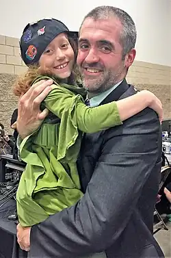 Jensen (right) with young competitive Magic player Dana Fischer in 2019