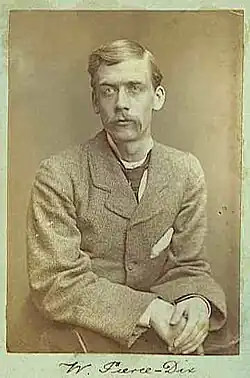 The spellings Peirce Dix, Pierce Dix, and Pearce Dix are all found in contemporary sources; in addition the name is often hyphenated (for example, to W. Pierce-Dix). "Peirce" is the spelling used by Dix in handwritten sources. Although "Peirce" was originally his middle name and "Dix" his surname (his father's name was William Henry Dix), Dix did often use a hyphenated form of his name ("W. Pierce-Dix"), as if "Pierce-Dix" were a double-barrelled surname: he also gave several of his children the middle name "Peirce".
