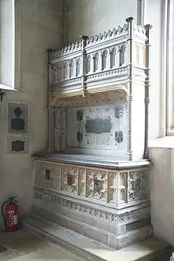 In the chancel of St John the Baptist, Penshurst is the tomb of Sidney with a memorial tablet, on the sides of which are engraven the escutcheons of his four daughters and their husbands:[1]