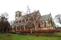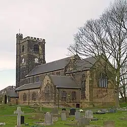This Gothic Revival parish church in Town Gate, Netherthong, Holmfirth, West Yorkshire is a Grade II listed building designed in 1830 by Robert Dennis Chantrell (1793–1872), architect of Leeds Minster.[12] The 26 feet (7.9 m) by 18 feet (5.5 m) chancel was added by Barber and this is included in the English Heritage listing description.[12] The chancel was consecrated on 3 December 1877 by the Bishop of Ripon, attended by a dozen local clergymen.[13]