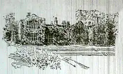 This design by Mallinson and Barber was an 1871 rebuild of a 17th-century house for client Tom Holdsworth. It is located off Mansion Lane near Huddersfield Road, Halifax. By 1905 it had been bought by James Booth JP, a mill owner, then in 1916 its annexe became a World War I hospital. Between 1919 and 1931 it was a guest house for young men, owned by J. H. Whitley. It was empty until 1938 when Patons and Baldwins acquired it as a sports facility for employees. In 1948 they presented it to Halifax Corporation and its gardens became a school sports ground. The Northern Ballet Theatre Company was there briefly in 1990, then the building fell into disrepair. In 2011 the Calderdale Register Office moved into the building, and as of 2014 it remains in occupation.[104][105] This building is now known as Spring Hall Mansions, and is not listed.[106][nb 8]