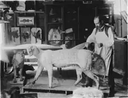 Hornaday's became an advocate for preserving the American bison from extinction. At the end of the nineteenth century, he began to plan, with Theodore Roosevelt's support, a society for the protection of the bison. Years later, as director of the Bronx Zoo, Hornaday acquired bison, and by 1903 there were forty bison on the Zoo's ten-acre range.[11] In 1905, the American Bison Society was formed[12] at a meeting in the Bronx Zoo's Lion House with Hornaday as its president. When the first large-game preserve in America was created in 1905—the Wichita National Forest and Game Preserve—Hornaday offered fifteen individuals from the Bronx Zoo herd for a reintroduction program. He personally selected the release site and the individual animals.[13] By 1919, nine herds had been established in the US through the efforts of the American Bison Society.[14]