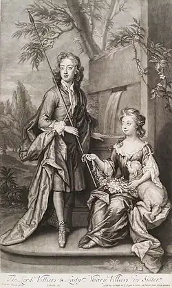 Jersey was the son of Edward Villiers, 1st Earl of Jersey and his wife Barbara, daughter of William Chiffinch.[3] His father had held several appointments as a Tory statesman, while his mother was a Jacobite who was created suo jure Countess of Jersey in the Jacobite peerage by the exiled Pretender, James Francis Edward Stuart, in 1716.[4]