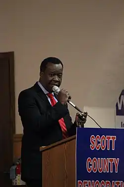 Wilson speaking at the 2016 Scott County, Iowa Democratic Party Dinner