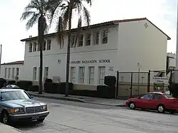 St. Gregory Nazianzen is a Catholic church owned by the Archdiocese of Los Angeles since 1923. The current cast concrete building and adjacent school were dedicated in 1938, but the area around the intersection of Norton and 9th Street had been operating as a church and school for fifteen years prior.[17][18]