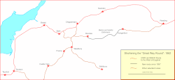 17. ^ Bradshaw's Rail Times for Great Britain and Ireland 1850, reprint by Middleton Press, Midhurst, 2012, 978-1-908174-13-0