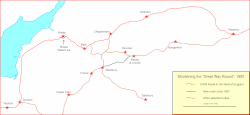 2. ^ An almost identical route from Yeovil to Exeter was later built by the LSWR.