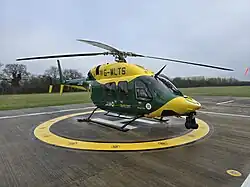 The helicopter's registration is G-WLTS and its callsign is Helimed 22. In 2018, the helicopter flew 494 missions, and the team responded to a further 609 incidents by road.[13] In 2019, the number of incidents rose 12% to 1,223 and 920 of these were attended by road, owing to the grounding of the helicopter for most of the year.[14]
