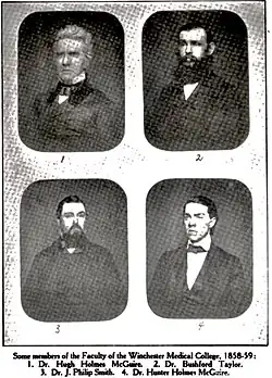 1. ^ a b c d e f McGuire, William P. (1937). "The Winchester Medical College". Surgery, Gynecology and Obstetrics. 64: 841–843.